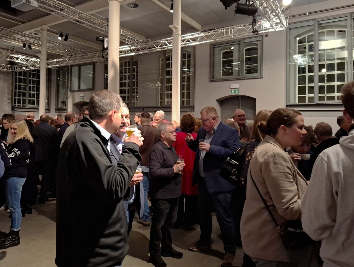 Zahlreiche Vertreterinnen und Vertreter aus Politik, Verwaltung, Justiz, Streitkräften, Polizei, Hilfeleistungszone sowie aus den Bereichen Schule, Soziales, Kultur, Sport und Vereinsleben waren der Einladung der Stadt Eupen in den Alten Schlachthof gefolgt und nutzten den Abend für Austausch und Gespräche in angenehmer Atmosphäre.