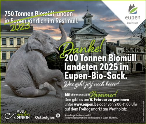 Seit dem 1. Januar 2024 sind in der Wallonischen Region sowohl Privathaushalte als auch Unternehmen verpflichtet, Bioabfälle getrennt zu sammeln. In Eupen zeigt die Maßnahme bereits Wirkung: 2025 landeten 200 Tonnen Biomüll im Eupener Biomüllsack.